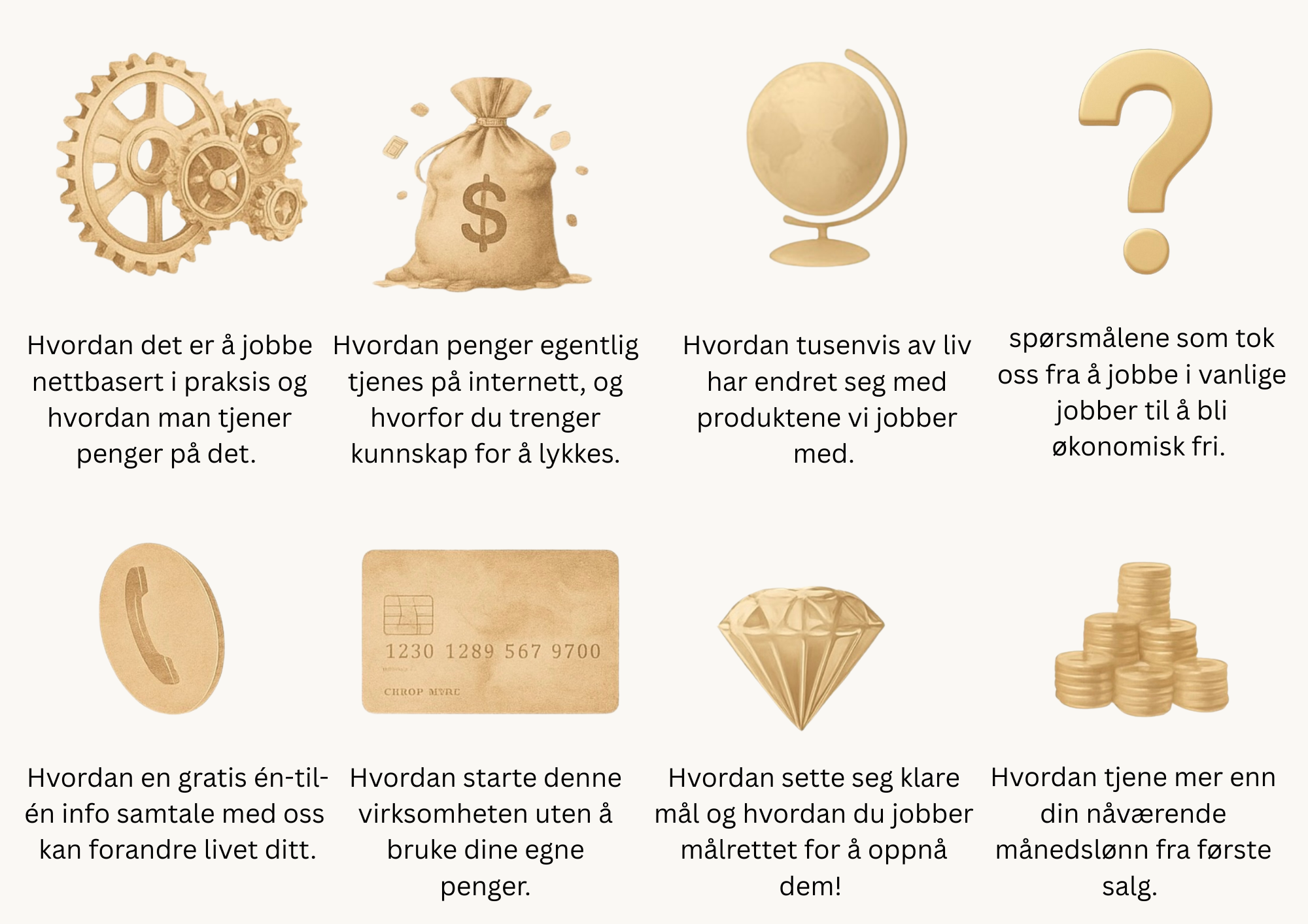 Jeg har alltid hatt en drøm om å jobbe hjemmefra og styre dagene mine selv. Men aldri visst hvordan jeg skulle få det til. Når jeg kom over denne måten å jobbe på, tikket det av på alt jeg drømte om og jeg visste at dette var det rette valget for meg.